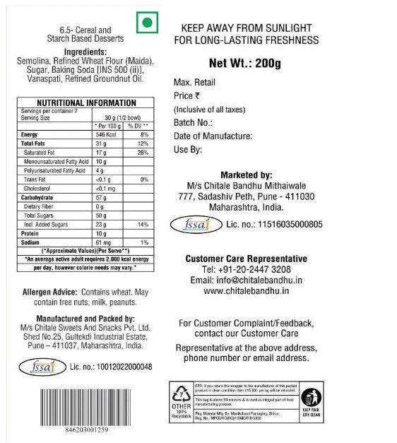 Chitale Shankarpale, is a traditional Indian dessert that will satisfy your sweet toth with its delicate crunch and mild sweetness. This bite-sized delicacy, fried to a crisp and delicately coated in sugar, is ideal for festivals or to enjoy with tea. It's a nostalgic favorite that delivers the true flavor of Indian delicacies into your house.